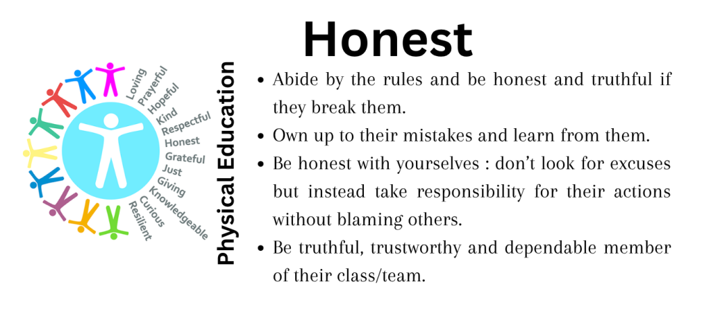 | Do I make good decisions ? Can I evaluate my performance and that of others ? Are my performances creative ? Do I have a good knowledge of PE ? | Do I get involved/ engaged in all activities? Do I have a positive activities towards other students ? Do I have a resilient character ? Do I uphold good values and ethics during lessons ? | Is my skill level appropriate for my age ? Am I physically active in lessons and in extra-curricular activities ? Am I competitive ? Do I have a good level of speed, power and cardiovascular fitness ? |