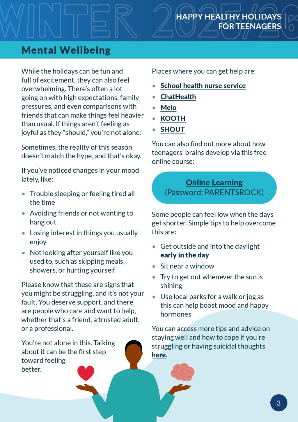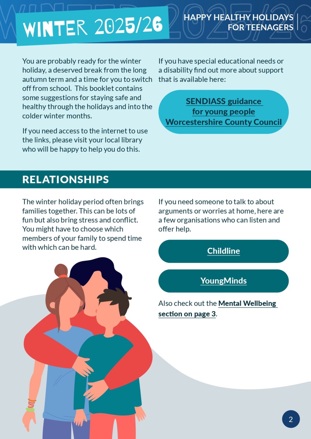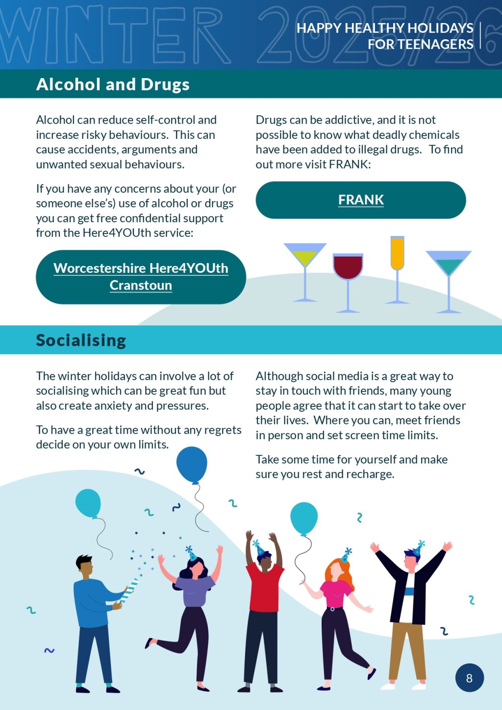 Worcestershire County Council has created a “Happy & Healthy” guide to help everyone stay safe and well during the holiday season and the winter months. There are two versions available: one designed specifically for teenagers and another tailored for parents and carers.
